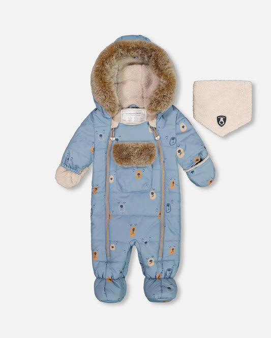 One-Piece Baby Play Snowsuit Designed For Car Seat Sage Animal Print