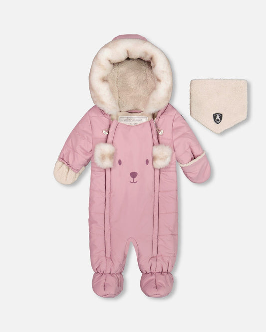 One-Piece Baby Layette Snowsuit Designed For Car Seat Dusty Pink