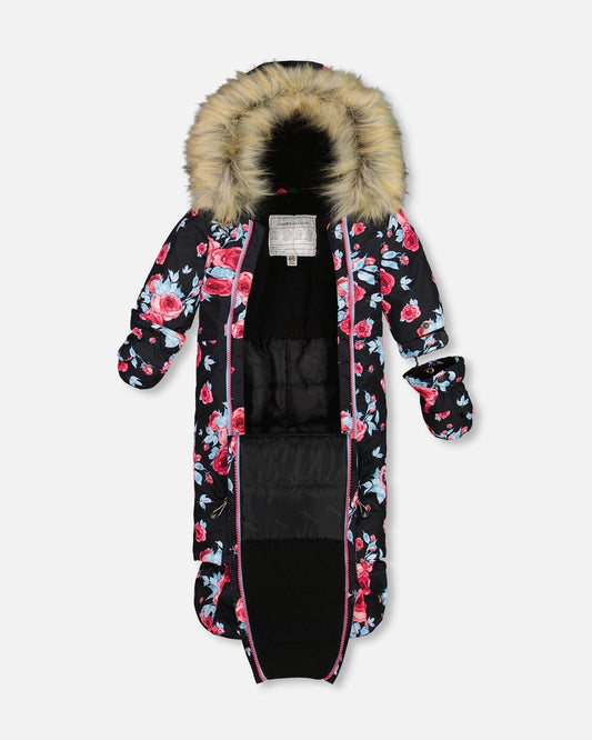 One-Piece Baby Snug Snowsuit Designed For Car Seat Pink Mini Flowers